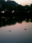 こちら側の、河土手にいる人、数名も体操してた。